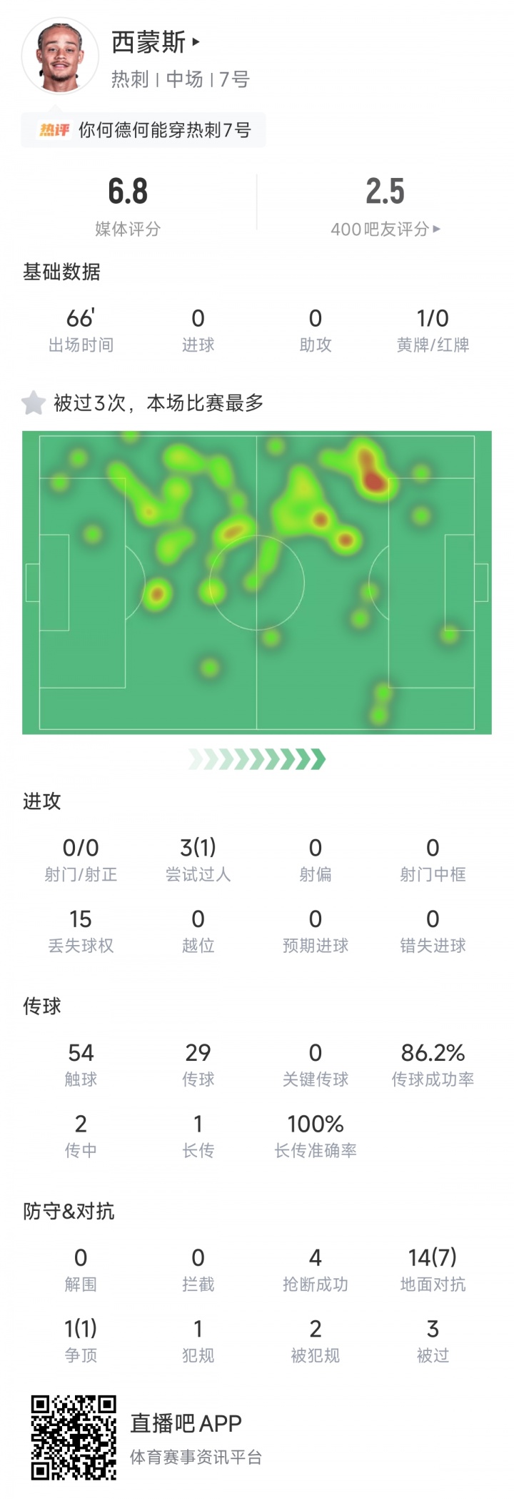 22岁的西蒙斯昨晚第7分钟替补登场,换下脑颤动的贝里瓦尔。然则他出战66分钟施展欠安,被过3次+15次丢球权,传球胜仗率86.2%。在第73分钟他被换下。
