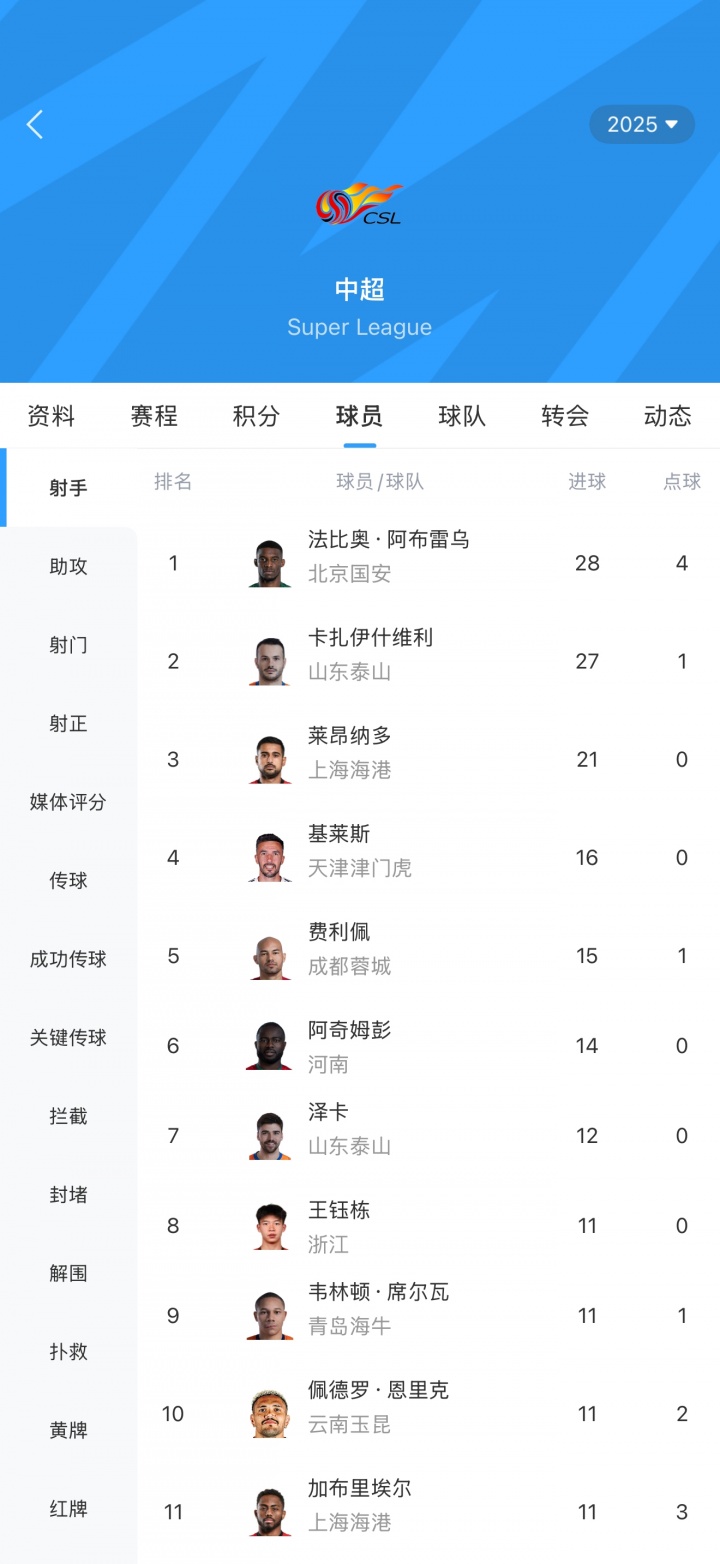 11月22日讯 2025赛季中超规模,末轮比赛法比奥大四喜,瓦科梅开二度,最终法比奥反超瓦科夺得本赛季中超金靴。