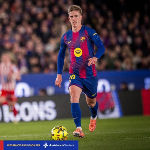 一线队球员达尼·奥尔莫在昨日对阵马德里竞技的比赛中左肩脱臼。经相关检讨后,已决定袭取保守诊疗决议。预测规复本领约为一个月。