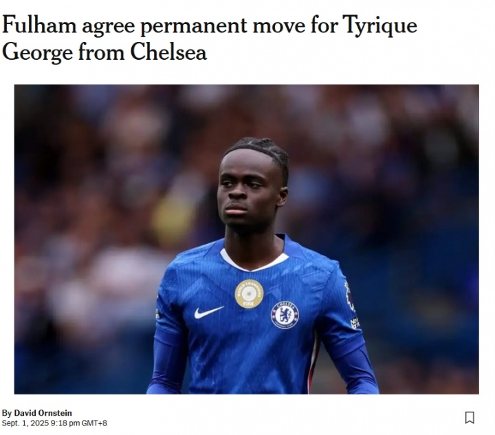 奥恩斯坦暗示,乔治将以永久转会神气从切尔西加盟富勒姆。这笔走动的总数达到2200万英镑,并包含二次转会分红条目。富勒姆已与球员就五年合约杀青契约,后续将安排体检。