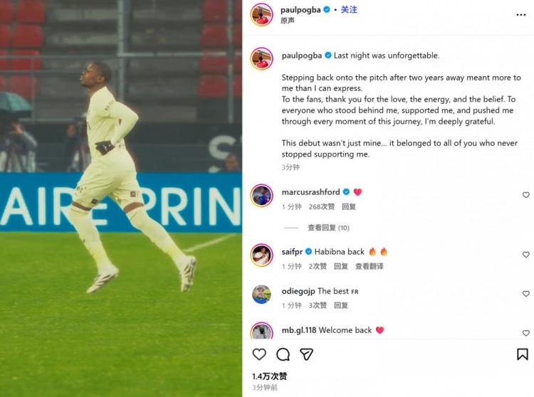 他也在赛后通过社媒发文系念:“昨晚注定记起。时隔两年再行踏上赛场,这种沸腾远非谈话好像抒发。”
