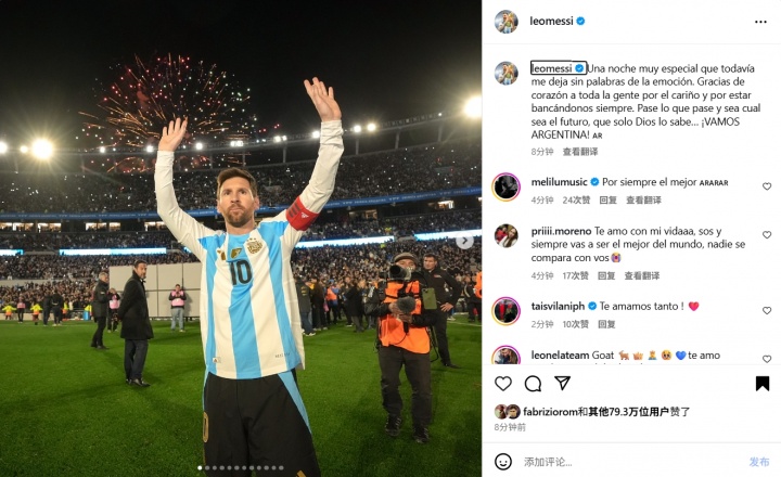 梅西在社媒发文写说念:“一个十分至极的夜晚,原意得让我于今难受以对。诚意感谢通盘东说念主的爱和一直以来的因循。不论发生什么,不论改日怎样,只须天主知说念……阿根廷加油!”