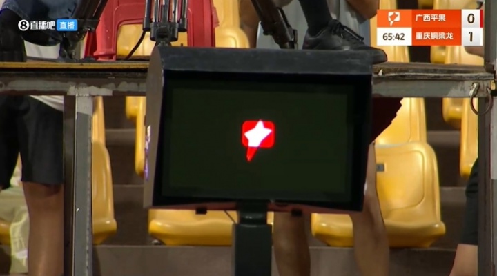 率先是裁判的换取设立可能出现问题,主裁判来到场边拿对讲机在换取。随后镜头给到场边的VAR设立,透露屏上平直是黑屏的。
