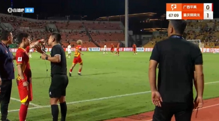 10月05日讯 中甲第25轮广西平果主场vs重庆铜梁龙比赛中,铜梁龙球员突围时踢到敌手肚子,现场字幕给出VAR介入了这次判罚,可能要判给广西点球,联系词现场事故欺压。