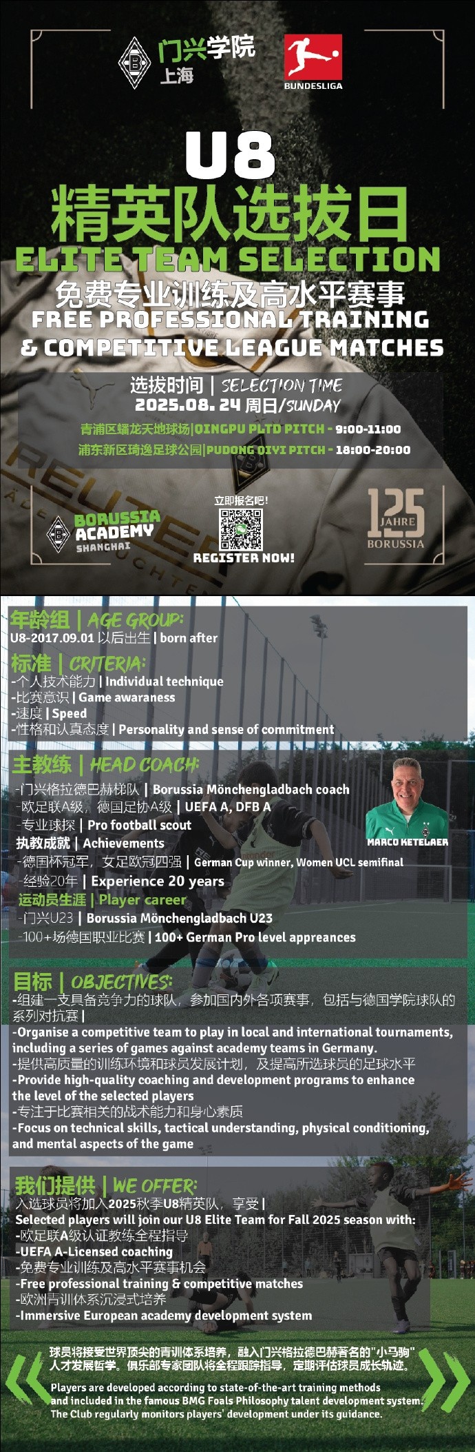 8月19日讯 官方音问,门兴上海学院招募U8精英队,入选小球员将享受磨真金不怕火装备、磨真金不怕火用度全免。