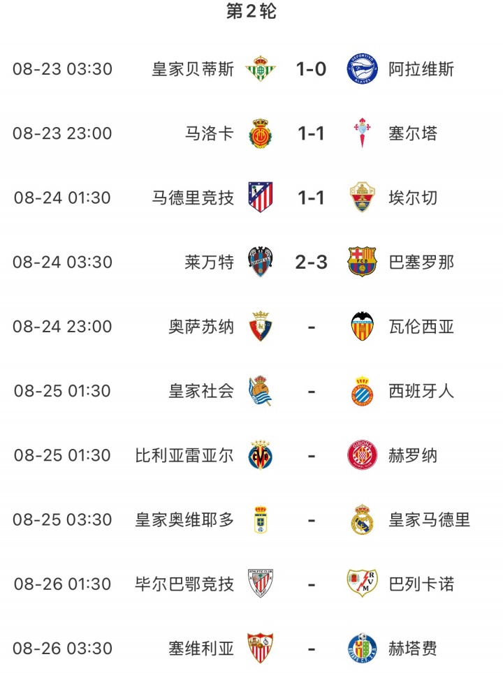 马竞1-1埃尔切两轮不堪,皇马本轮将客战奥维耶多。