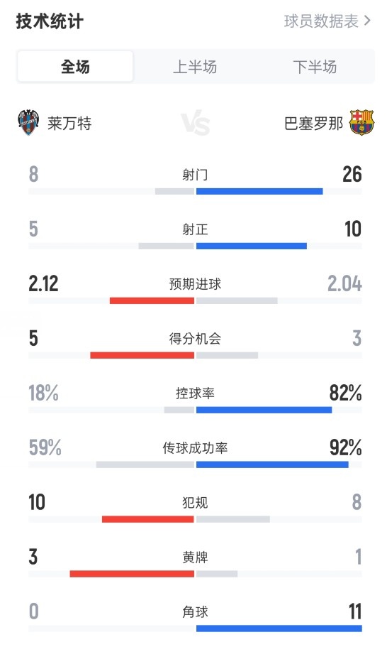 你的位置:欧洲杯直播 > 意甲 > 莱万特2-3巴萨全场数据:射门8-26,射正5-10,控球率18%-82%