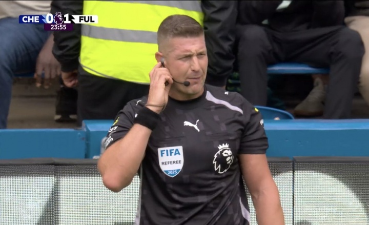 终末主裁判现场晓谕:"经核查,富勒姆30号球员在封堵传中时伸展双臂使体格不当然扩大。因此我的最终判罚是点球。"