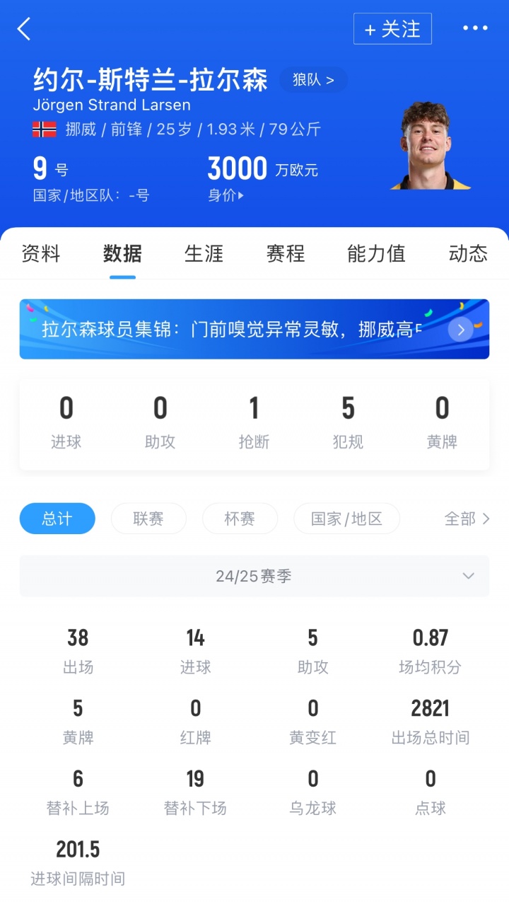 拉尔森时年25岁,挪威籍先锋。上赛季他为球队出场38场,赢得14粒进球和5次助攻。现在其德回身价为3000万欧。