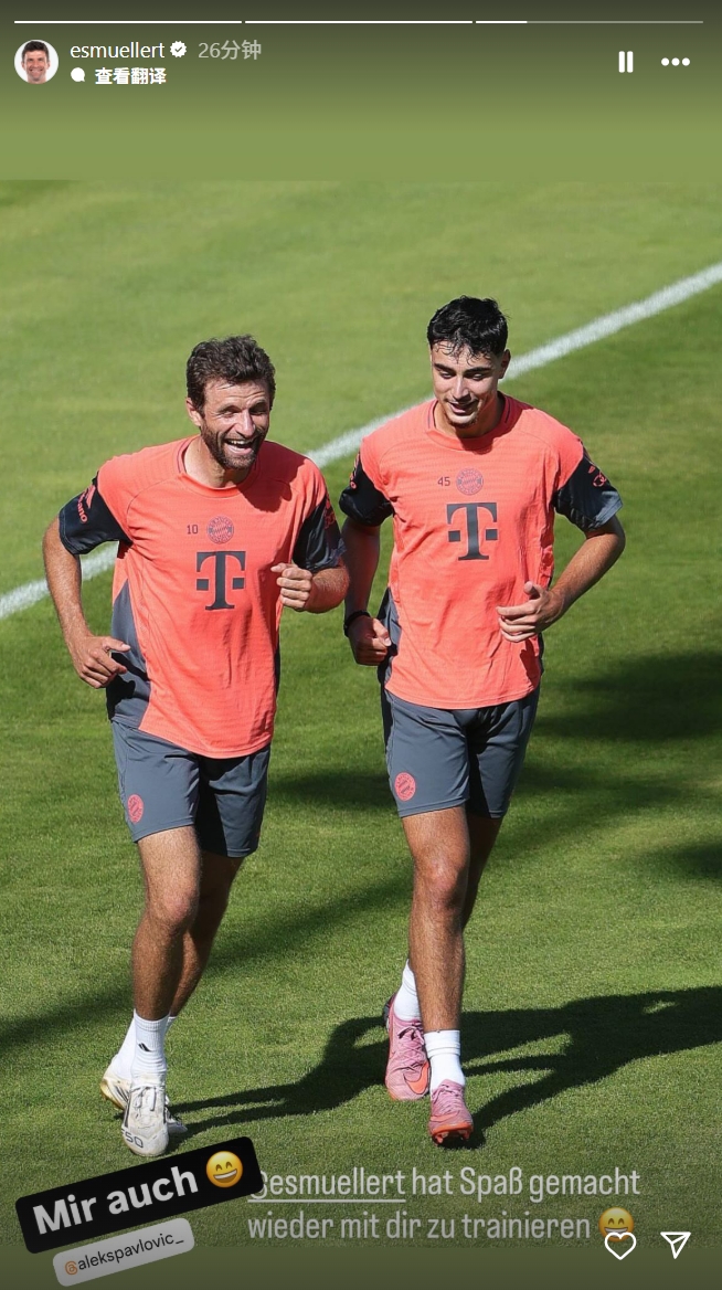 帕夫洛维奇社媒晒与穆勒熟悉的像片,他写说念:很欢跃又能和你一都熟悉😃