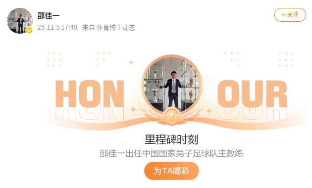 邵佳一的个东谈主微博更新了他新的里程碑技术:邵佳一出任中国国度须眉足球队主磨真金不怕火。