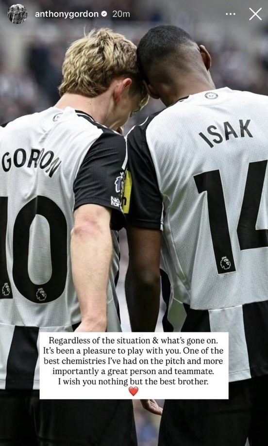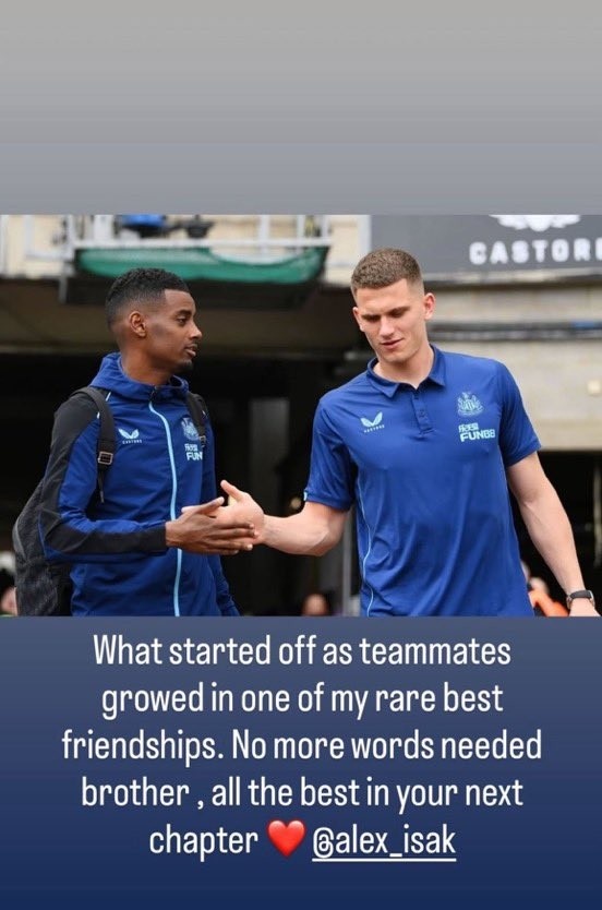 纽卡斯尔球迷关于伊萨克离队的边幅相当起火,直到现时,这位球员也莫得以任何边幅向老东家作念出任何表态,如告别之类。